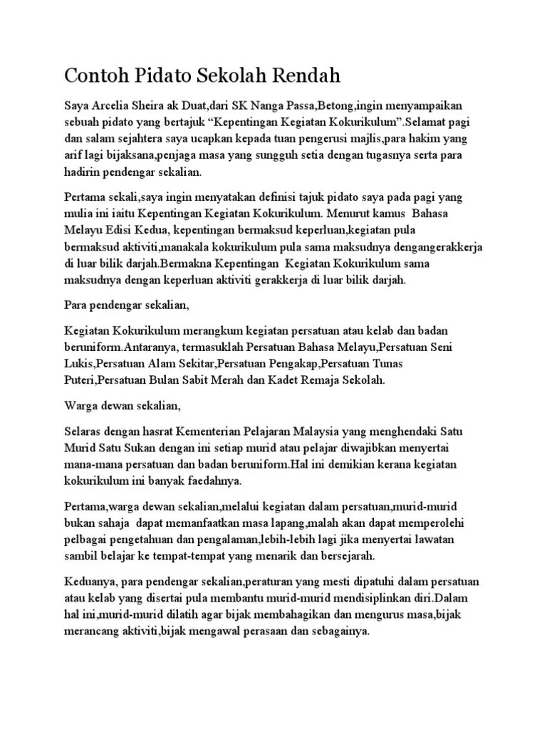 Contoh teks pidato bahasa melayu sekolah menengah lukisan pidato sekolah rendah. Contoh teks pidato sekolah rendah remaja berintektuallah yang mampu berfikir seperti masyarakat minda kelas pertama, dalam melahirkan negara yang gemilang.